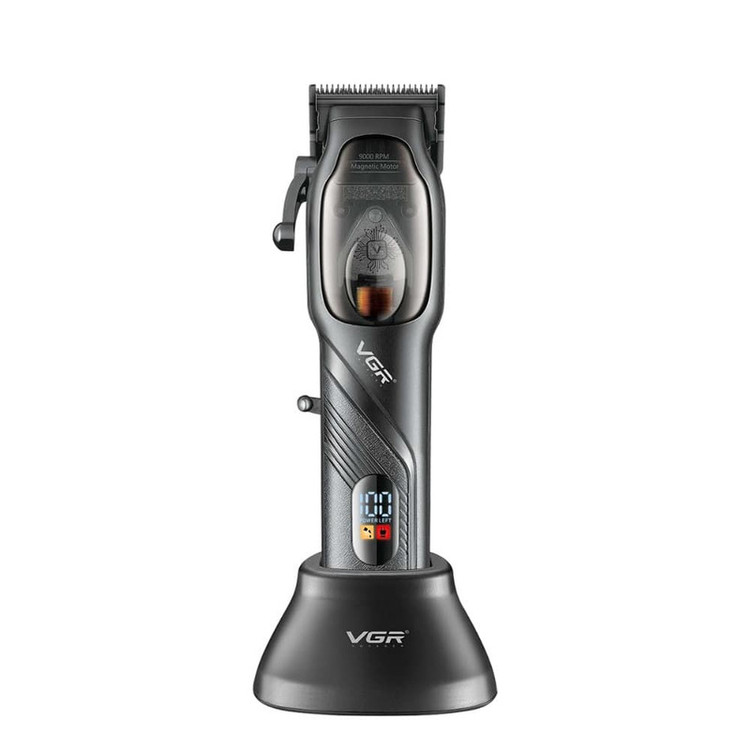 ماشین اصلاح موی سر و صورت وی جی آر مدل V-269، دارای نشانگر LED، منبع انرژی باتری قابل شارژ، جنس تیغه کربن استیل، مدت زمان شارژ 180 دقیقه و مدت زمان استفاده پس از شارژ 150 دقیقه