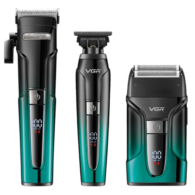 ست اصلاح و اصلاح حرفه ای 3 در 1 VGR V-694 با ایستگاه شارژ ترکیبی از حجم زن مو، خط زن و شیور است که طیف کاملی از ابزارهای اصلاح مو و ریش را ارائه می دهد. این مجموعه با داشتن یک موتورقدرتمند با گشتاور بالا، تیغه های فولادی ضد زنگ و سرامیکی و بدنه تمام فلزی بادوام، بسیار قابل اعتماد، بادوام و استفاده آسان است. صفحه نمایش LED داخلی اطلاعات کلیدی در مورد عملکرد دستگاه را برای نظارت آسان نشان می دهد. تیغه های R شکل مخصوصا برای محافظت از پوست در برابر آسیب طراحی شده اند. علاوه بر این، محفظه ضد آب این امکان را به دستگاه ها می دهد که حتی در شرایط رطوبت بالا یا محیط های سخت نیز مورد استفاده قرار گیرند. ماشین اصلاح حجم زن 2500 میلی آمپر و ماشین اصلاح خط زن 1400 میلی امپر و شیور غلتکی 1400 میلی امپر می باشد. مجموعه ماشین اصلاح وی جی آر Vgr V-694 شامل 3 عدد ماشین اصلاح با کیفیت و قدرتمند میباشد که جنس بدنه این ماشین های اصلاح ، پلاستیک فشرده با طراحی منحصر به فرد میباشد . اقلام درون جعبه ماشین اصلاح سه قلو ویجیار مدل vgr V694 شامل درپوشهای محافظ تیغه ، 11 عدد شانه تنظیم ارتفاع اصلاح ، روغن مخصوص ، برس تمیز کننده ، استند شارژر ، کابلهای شارژر USB و کاور مخصوص شیور میباشد