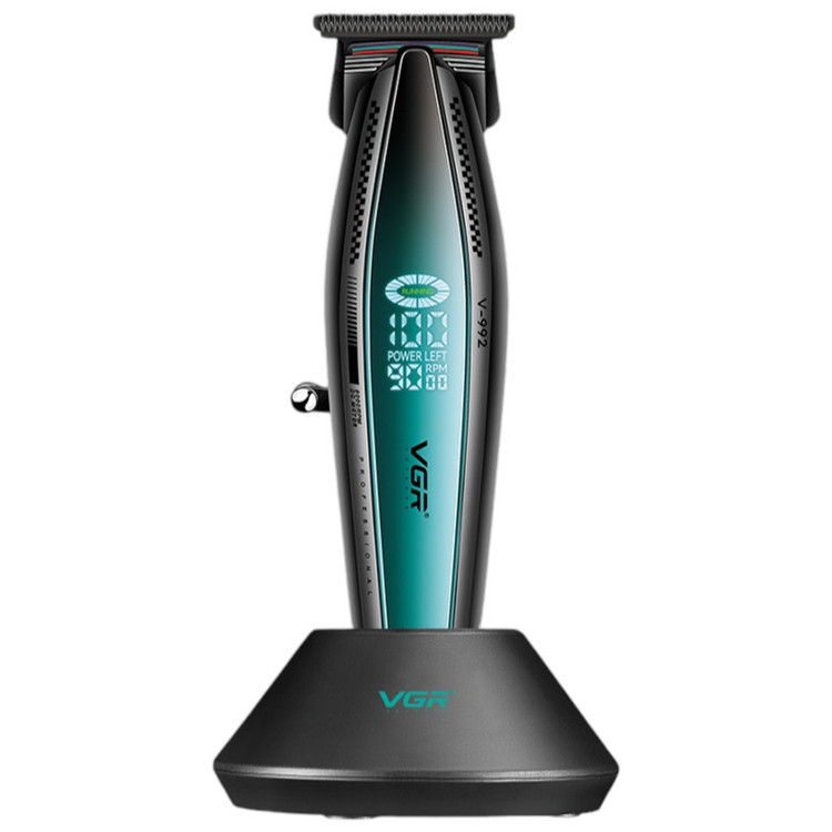 جنس تیغه ی این خط زن بسیار عالی و مقاوم است و در ساخت آن از سرامیک و DLC استفاده شده است.DLC مخفف کلمه “DIAMOND LIKE CARBON” (پوشش کربن الماس مانند) است.تیغه را با یک لایه نازک از اتم های کربن با سختی مشابه با سختی الماس طبیعی می پوشاند. DLC سخت ترین پوششی است که روی تیغه های ماشین اصلاح استفاده می شود. در کنار سختی برتر تیغه، دارای مقاومت سایشی بسیار بالا، اصطکاک کم و مقاومت در برابر خوردگی عالی است. رنگ مشکی رنگ پوشش DLC همچنین خاصیت ضد انعکاس را فراهم می کند. سطوح پوشش داده شده با DLC در برابر سایش عوامل شیمیایی، رطوبت و سایر شرایط جوی مقاومت می کنند. آنها بسیار بادوام هستند و طول عمر بیشتری دارن خط زن وی جی آر V-992 دارای نمایشگر هوشمند LED است که میزان شارژ و دور موتور دستگاه را نشان میدهد.در بغل دستگاه دکمه ای قرار دارد که برای روشن و خاموش کردن دستگاه بکار می رود.خط زن VGR V-992 دارای موتور سریع و پرقدرت با دور موتور 9000 دور در دقیقه است. ماشین اصلاح وی جی آر مدل VGR V-992 بسیار خوش دست بوده و دارای طراحی آرگونومیک است.اندازه ی اصلاح این خط زن صفر است و با کمک شانه هایی که دارد میتوانید اندازه ی اصلاح را بین 0 تا 3 میلی متر تنظیم کنید. خط زن قابل شارژ VGR-992 فقط یک ماشین مو نیست. این یک ابزار نظافت همه کاره است. که طول ها و مدل های مختلف مو، از کوتاه و مرتب تا بلندتر و بافت بیشتر را برآورده می کند. عمر باتری قوی تا 240 دقیقه به این معنی است که می توانید ظاهر خود را بدون وقفه حفظ کنید، چه در خانه و چه در حال حرکت. تیغههای حرفهای برشی صاف را تضمین میکنند و کشش و کشش را به حداقل میرسانند، که مخصوصاً برای پوستهای حساس و نواحی ظریف مفید است.