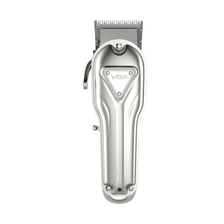 ماشینهای اصلاحی که مخصوص اصلاح موی سر ساخته میشوند، باید موتور قدرتمندی داشته باشند؛ زیرا موهای سر ضخیم بوده و نسبت به صورت و بدن تراکم بیشتری دارند. ماشین اصلاح V-140 ساخت شرکت «وی.جی.آر» با داشتن موتور لرزشی فوق العاده قوی مناسب استفاده برای اصلاح موهای ضخیم است. تیغهی ماشین اصلاح از جنس استیل پوشش داده شده با کروم است که در برابر زنگزدگی مقاوم است. به کمک این تیغه میتوان موهای سر را در اندازههای 1 تا 3.5 میلیمتر کوتاه کرد.جنس بدنه این ماشین اصلاح فلزی و در دو رنگ نقره ای و طلایی بوده که کار کردن با آن حس خوشایند کار با یک محصول با کیفیت را به شما می دهد. در کنار دستگاه، اهرم تنظیم چرخشی قرار دارد که اگر دستگاه را با دست راست بگیرد، با انگشت شست بهراحتی میتوان آن را در جای مناسب تنظیم کرد. به کمک این اهرم میتوان فاصلهی بین تیغههای بالا و پایین را تغییر داد و بدون استفاده از شانه، طول اصلاح دلخواه را تنظیم کرد. هنگامی که این اهرم به پایین فشار داده میشود، طول برش تیغهها افزایش مییابد و وقتی در بالاترین موقعیت قرار دارد، تیغهها در کمترین فاصله از هم قرار میگیرند.این محصول از باتری پر قدرت 2500 میلی آمپری بهره می برد که با 180دقیقه شارژ میتوان به مدت 300 دقیقه از آن استفاده نمود. برای اصلاح مو در اندازههای مختلف 4 عدد شانهی اصلاح با طول برش 1.5 تا 6 میلیمتر ارائه شده که روی تیغه قفل میشوند. داخل جعبه شانه، برس تمیزکننده و روغن نیز قرار داده شده است. تیغههای ماشین اصلاح در کارخانه تنظیم و روغنکاری شدهاند و ممکن است با بازکردن جعبه در اولین مرتبه، اثرات آن را مشاهده کنید. چنانچه تیغهها برای تمیزکردن یا تعویض باز شوند، مجددا باید تنظیم شوند. تیغههای ماشین اصلاح پس از هر بار استفاده باید روغنکاری شوند. برای این کار باید از روغن شرکت وی.جی.آر که داخل جعبه قرار دارد استفاده شود. توجه داشته باشید که برای روغنکاری تیغهها از گریس، روغن مو و هر روغنی که حاوی مواد نفتی یا حلال باشد استفاده نکنید؛ زیرا با تبخیر حلال آنها لایهی ضخیمی از روغن بین تیغهها باقی میماند که حرکت تیغهها را کند میکند.