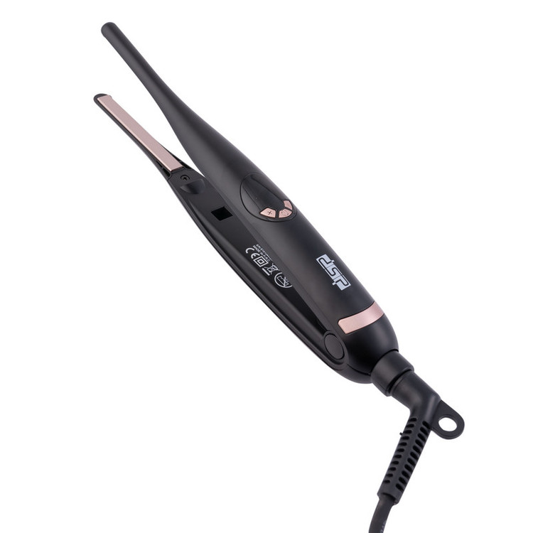اتو موی «دی اس پی» (DSP) مدل «10443» جزو اتو موهای باریک است که برای موهای کوتاه مناسب هستند. ابعاد صفحات اتو مو 8×75 میلیمتر می باشد. قسمت دستهی اتو مو عریضتر است تا دردستگرفتن آن مشکل نباشد. دکمهی روشن/خاموش اتو مو روی دسته آن قرار دارد و در کنار آن، چراغ نشانگر دستگاه دیده میشود. دمای صفحات اتو مو را میتوان به کمک کلیدهای آن تنظیم کرد. کمترین دمای قابلتنظیم 120 درجه و بیشترین دما 210 درجهی سانتیگراد است که بازهی دمایی گستردهای را تشکیل میدهند. سیم برق دستگاه 1٫2 متر طول داشته و در محل اتصال به بدنه، قابلیت چرخش دارد. این قابلیت علاوهبر جلوگیریکردن از گرهخوردن سیم و فرسودهشدن زودهنگام آن، کارکردن با دستگاه را نیز آسانتر میکند. طراحی این اتو مو بهگونهای انجام شده است که کمترین وزن ممکن را داشته باشد تا دردستگرفتن و استفاده از آن راحتتر شود؛ همچنین بتوان آن را با خود به مسافرت برد. . بهطور خلاصه اتو مو دی اس پی 10443 دارای صفحات باریک، دمای قابلتنظیم از 120 تا 210 درجهی سانتیگراد، سیم بلند 1٫2متری با طراحی مناسبی که دارد، برای استفادهی افرادی با موی کوتاه بسیار مناسب است.